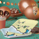 Mann, der mit Flügeln auf Geld zeigt Pappteller