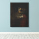 Dies ist eine Reproduktion von "A Man in Armor" von 1655 von Rembrandt van Rijn. Dieses später von Rembrandt erschienene Meisterwerk trägt den Untertitel "Alexander der Große" und wurde mit neunundvierzig Jahren geschaffen. Er war seit zwanzig Jahren ein prominenter Künstler und Mitglied der Gemeinschaft in Amsterdam. Trotzdem näherte sich Rembrandt einer Finanzkrise, als dieses Meisterwerk produziert wurde. Das Gemälde zeigt Rembrandts wundervolle Lichtverwendung in seinen Werken mit dem Glanz auf dem Helm, der auch über dem Herzen auf der Brustplatte zum Ausdruck kommt. Das rote Gewand trägt zur dramatischen Natur des Porträts bei. Dieses Meisterwerk ist 137 cm breit und 104,5 cm hoch und befindet sich in der City Art Gallery und im Museum of Glasgow, Schottland.