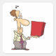 Ein Mann, der auf eine rote Kiste neugierig aussieht. Dieses Design sieht auf diesen Aufklebern wirklich effektiv aus