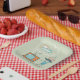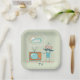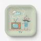 Ein Mann mit einem Schnurrbart, der neben seinem Fernseher stehend ist. Dieses Design wirkt auf diese Paper-Teller sehr effektiv