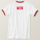 Men Text oder Name oder Word mit Red Color Text und The Style ist ein Ringer-T - Shirt, der Farbtyp ist weiß/rot und der Formattyp ist Adult L.