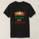 Männer-T - Shirt mit dem Text "Know My Worth" in afrikanischen Farben, oben mit einer goldenen Krone. Auf der Rückseite steht ein goldenes Dollarzeichen.