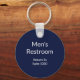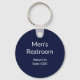 Dieser dunkelblaue Schlüsselanhänger hat einen weißen Bildschirmtext, den Sie bearbeiten können. Es steht Männer-Restroom Rückkehr zu Suite 1000. Alle Texte können bearbeitet oder gelöscht werden.