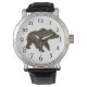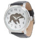 Männeruhr mit Vintagem schwarzen Lederband und Bärendesign