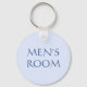 Herren Zimmer Schlüsselanhänger mit dunkelblauem Text auf blauem Hintergrund.
