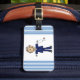 Vor der Einrichtung, eine männliche Strichmännchenkrankenschwesterhelfer oder eine Krankenschwester mit einem Stethoskop auf einem Knopf, den Sie leicht besonders anfertigen können. Mittleres Haut-Strichmännchen.