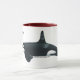 Wecker-Tasse mit wunderbar ausführlicher Illustration eines männlichen Mörderwals (Orcinus Orca) durch Uko Gorter, Naturgeschichteillustrator. Erträge von den Verkäufen fördern die Erhaltung, die Bildung und die Forschungstätigkeiten des Puget- Soundkapitels der amerikanischen Walgesellschaft (acspugetsound.org)