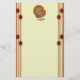 Dieses Sonderpapier ist eine blassgelbe Farbe mit rötlich-orangen und bräunlichen Rändern auf jeder Seite, die runde rote Sternexplosion mit einem männlichen extravaganten Truthahn in den Farben Herbst getan haben, mit seinen Schwanz Federn an der Spitze der Schreibwarenindustrie verblasst.