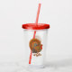 Dieser Acryl-Drink-Trommel mit Stroh und Deckel hat einen männlichen Truthahn stehend in einem Haufen von Herbstfarbenen Blätter mit Herbstfarbenen Federn in Braun und Orangen vorne und hinten.