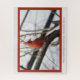 Ein lustiges Rätsel für jeden Vogelbeobachter/Liebhaber! Foto eines wunderschönen roten männlichen nördlichen Kardinals, der sich im Baum posiert.