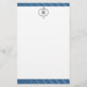 Fügen Sie Ihre Initiale diesem männliche blaue Streifen SeeSegelboot und Ankerbriefpapier hinzu. Vervollkommnen Sie für Geschäft, Segelbootenthusiasten oder großes Geschenk für den Mann in Ihrem Leben.