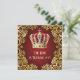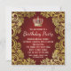 Herrliche Geburtstagsfeier mit juwelengeschmückter Krone auf rotem und goldenem Hintergrund. Diese königliche Geburtstagsfeier-Einladung lässt sich leicht an Ihre Veranstaltung anpassen, indem Sie Ihre Veranstaltungsdetails, den Stil des Schriftartes, die Größe und Farbe des Schriftartes und den Wortlaut hinzufügen.