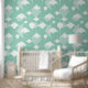 Coole Tapete mit blauen Ozeanmotiven, gemustert mit weißen Mantarochen und Rochen. Diese wunderschöne Tapete verleiht jedem Raum ein angenehmes und entspanntes Ambiente.