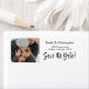 Manuelles Schwarzes Skript Hochzeit Speichern Sie das Date Foto Rücksendeadresse Label.Das Save the Date Foto Rücksendeadresse Etikett kann geändert werden, um Ihren Namen und Ihr Foto. Dieses Adressetikett hat ein Bild, das ersetzt werden kann.