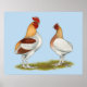 Die Taillenlosigkeit bei Hühnern wird durch eine Mutation verursacht, bei der die "Papstnase", aus der die Federn des Schwanzes wachsen, vermisst ist. Das sind rote Pyle-Game-Bantams.