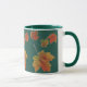 Ahorn-Blätter kaskadieren über diese Tasse.