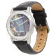 Uhr, Vintage Männeruhr mit schwarzem Lederarmband