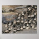Wildebeest überquert den Mara River bei ihrer jährlichen Migration von Kenia nach Tansania. Vollständig anpassbares Poster in verschiedenen Größen und Papiertypen. Wildebeest ist berühmt für ihre jährliche Fernwanderung, die scheinbar zeitlich mit dem jährlichen Niederschlag- und Graswachstum zusammenfällt. Der Zeitpunkt ihrer Migration in der Regen- und Trockenzeit kann von Jahr zu Jahr erheblich (monatlich) variieren. Am Ende der Regenzeit (Mai oder Juni in Ostafrika) wandern die Wildtiere in Trockengebiete, weil es an Oberflächenwasser (Trinkwasser) mangelt. Wenn die Regenzeit wieder beginnt (Monate später), kehren die Tiere schnell in ihre Nasssaison-Bereiche zurück.
