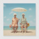 Zwei elegante Damen sitzen unter einem Schirm ist die Sonne am spanischen Marbella Beach