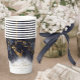 An abstract background reminiscent of marble in shades of navy blue veined with glittering gold is the backdrop for elegant script text and modern design layouts in the pieces of this beautiful wedding suite. The wedding paper cup shown here features the above plus optional flowing script text of 'Love & Thanks' and a template to add the bride and groom's names and wedding date. Search ID644 to see all the coordinating pieces in this set.