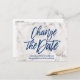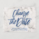 Marble Navy Blue Glitzer Skript ändern das Datum Ankündigungspostkarte
