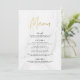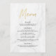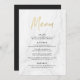 Carte de menu mariage design et moderne avec une police de script tendance en faux feuille d'or, arrière - plan en marbre blanc et des espaces réservés pour votre menu de mariage personnalisé. L'arrière du menu marbre et or mariage peut être changé en une couleur de votre choix avec l'outil Personnaliser.