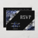 Carte de réponse de mariage. Avec une réponse de style mariage moderne sur un marbre bleu foncé et argent. ⭐ Ce produit est 100 % personnalisable. Les graphiques et/ou le texte peuvent être ajoutés, supprimés, déplacés, redimensionnés, modifiés, pivotés, etc... 99 % de mes conceptions dans ma boutique sont réalisées en couches. Cela vous permet de redimensionner et de déplacer facilement les graphiques et le texte pour qu'ils s'adaptent parfaitement à chaque produit. 📌 (Veuillez vous assurer de redimensionner, modifier, ajouter, supprimer ou déplacer tout graphique ou texte si nécessaire avant de commander) Vous pouvez également "transférer le design" sur d'autres produits Zazzle et ajuster le design pour qu'il convienne à la plupart des produits Zazzle. (cliquez sur la zone de transfert ci-dessous) Certains graphiques de texte ont des cases prêtes à remplir ou vous pouvez cliquer sur