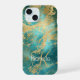 Une belle couleur vert turquoise avec du marbre doré sur cette coque d'iPhone. Ajoutez votre monogramme avec votre initiale et votre nom. Disponible dans toutes les tailles de coques d'iPhone actuelles.