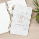 Un planificateur personnalisé chic pour votre salon ou votre salon de coiffure dispose de deux lignes de texte personnalisé en lettres grises au fusain, sur un arrière - plan en marbre blanc orné d'une paire de ciseaux styliste en feuille d'or faux rose. Personnalisez avec votre nom ou nom de salon et l'année, ou votre choix de texte personnalisé.