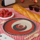 Die schönen Sticker, die im Stil der Rotoreliefs-Serie von Marcel Duchamp entworfen wurden, servieren Ihren Gästen stilvoll.