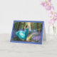 Cette carte d'anniversaire présente une scène sereine et gracieuse d'une femme en robe bleue qui coule à travers un chemin forestier ensoleillé, entouré de champs de violet et de fleurs sauvages lavande. La position élégante de la femme et sa robe fluide créent un sens du mouvement, ajoutant une qualité dynamique et éthérée à l'image. Son regard est serein et contemplatif, saisissant un moment de tranquillité et de beauté naturelle. La carte est encadrée d'une bordure dorée, rehaussant son élégance et son raffinement. L'accueil "Joyeux Anniversaire" est affiché en haut à gauche dans un script élégant et fluide, ajoutant une touche personnelle à la carte. L'arrière - plan bleu vient compléter la robe de la femme et le décor floral, créant un design harmonieux et visuellement attrayant. Cette carte est parfaite pour ceux qui recherchent une façon raffinée et belle d'envoyer des voeux d'anniversaire, séduisant pour les clients qui apprécient la beauté naturelle, l'élégance et l'imagerie paisible.