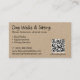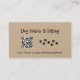 Carte de visite personnalisé pour les promeneurs à chiens avec une fausse texture de papier des deux côtés! Essayez-le pour voir à quoi il ressemble ! Il vous suffit d'ajouter vos coordonnées et URL personnalisées à votre site Web, aux médias sociaux et/ou à votre liste de prix. Vous avez la possibilité d'ajouter une ou deux URL. Il y a un code QR à l'avant, et à l'arrière avec une zone de texte et de petits empreintes de pattes. Plusieurs options de cartes et styles de papier sont disponibles.