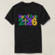 Festive shirt with "Mardi Gras 2026" in pastel shades of Mardi Gras colors: purple, green, and gold with a fleur-de-lis for the 0.