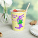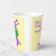 Diese Papiertassen haben einen lila Mardi Gras Alligator, der eine grüne Akkordeon spielt und gelbe Perlen trägt. Im Text steht "Mardi Gras 20XX". Update für Ihr Jahr.