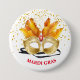 Dieses quadratische Button wird mit einem festlichen Mardi Gras Maskenprint gezeigt. Große Größe angezeigt. Passen Sie dieses Objekt an oder kaufen Sie, wie es ist.