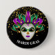 Dieses runde Button-Button wird mit einem festlichen Mardi Gras Maskenprint gezeigt. Große Größe angezeigt Anpassen Sie dieses Objekt oder kaufen Sie, wie es ist.