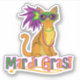Diese niedliche Katze ist bereit, Mardi Gras zu feiern! Sie trägt eine grüne, lila und gelbe Perle sowie eine bunte Federmaske.