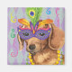 Niedliche, sanfte Dackel, mit festlicher Maske und Perlen verkleidet, die zum Vergnügen auf Mardi Gras oder zu jeder anderen Zeit bereit ist. Großartiges Geschenk für sich und Ihre Dackel liebende Familie und Freunde.