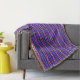 Dieses Thro-Kissen hat ein geometrisches Mardi Gras-Design von einer Art flacher Ovalen wiederholt sich durch das Design in Gold und Grün auf einem Feld von lila.