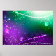 Heller lila und grüner Hintergrund mit glänzenden Konfetti. Festival Mardi Gras.