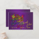 Mardi Gras Mariage Réception Merci Cartes de Place | Nous avons créé un luxueux masque Mardi Gras doré décoré de plumes de paon multicolores et perles sur un magnifique arrière - plan violet profond et le texte est dans une belle couleur dorée gratuite. Coordination des invitations Mardi Gras Wedding, cartes accessoires et autres produits mariages et événementiels sont disponibles.