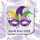 Niedliches und festliches Design für Ihr Mardi Gras themed Party. Personalisieren Sie die Wörter und das Jahr.