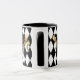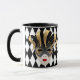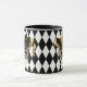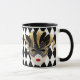 Cette tasse peignée en noir et blanc a l'image d'un masque Mardi Gras festif sur un imprimé motif en diamant noir et blanc. Customisez cet objet ou achetez tel que conçu.
