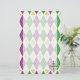 Helle, lila und grüne Diamanten überlagert mit goldfarbenen Diamanten-Konturen und Lilie erinnern an die Enthüllungen und Feiern, die mit einem New Orleans Mardi Gras verbunden sind, während eine cremefarbene Basis diesem Muster eine Touch der Verfeinerung verleiht. Eine gemusterte Lilie sitzt in der unteren Ecke der Schreibwarenhandlung, um eine niedliche Touch zu schaffen.