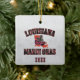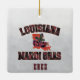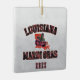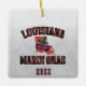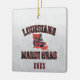 Ein farbenfroher Mardi Gras Keramik-Ornament in kräftigen Farbtönen, der das Wort in kräftigen Rot- und Schwarztönen buchstabiert