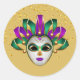 Dieser große Rundaufkleber wird in einer festlichen Mardi Gras-Fest-Maske gedruckt. Passen Sie dieses Objekt an oder kaufen Sie, wie es ist.