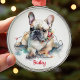 Mignonne ornement de Noël de Bulldog français pour votre Frenchie ! L'aquarelle originale de Nicole. Personnalisez avec un nom personnalisé.