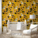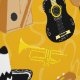Lebhafte Tapete gemustert mit Illustrationen von Mariachi-Musikinstrumenten. Die Hintergrundfarbe ist ein reichhaltiges goldenes Gelb, aber Sie können dies selbst anpassen und ändern.