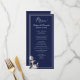 Magnifique carte de menu mariage à thème nautique, côtier ou plage avec ancre nautique accentuée de fleurs d'aquarelle en bleu marine, pêche, bleu clair et blanc, lettrage fantaisie typographie de script de calligraphie pour le titre et texte en blanc contre une couleur marine bleu arrière - plan. ASSISTANCE : Pour obtenir de l'aide sur la modification ou la personnalisation de la conception, le changement de couleur, le transfert de la conception vers un autre produit ou pour coordonner des éléments, contactez le concepteur AVANT DE COMMANDER via l'onglet MESSAGE Conversation Zazzle ou envoyez un courriel à makeitaboutyoustore@gmail.com.