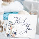 Belle élégante carte de mariage sur le thème nautique, côtier ou plage Merci avec une ancre marine accentuée de fleurs d'aquarelle en bleu marine, pêche, bleu clair et blanc, écriture sophistiquée typographie de script de calligraphie pour le titre et le texte en bleu marine. Inclure un message d'appréciation préimprimé ou supprimer l'exemple de texte pour laisser vide pour écrire vos notes personnelles. ASSISTANCE : Pour obtenir de l'aide sur la modification ou la personnalisation de la conception, le changement de couleur, le transfert de la conception vers un autre produit ou pour coordonner des éléments, contactez le concepteur AVANT DE COMMANDER via l'onglet MESSAGE Conversation Zazzle ou envoyez un courriel à makeitaboutyoustore@gmail.com.
